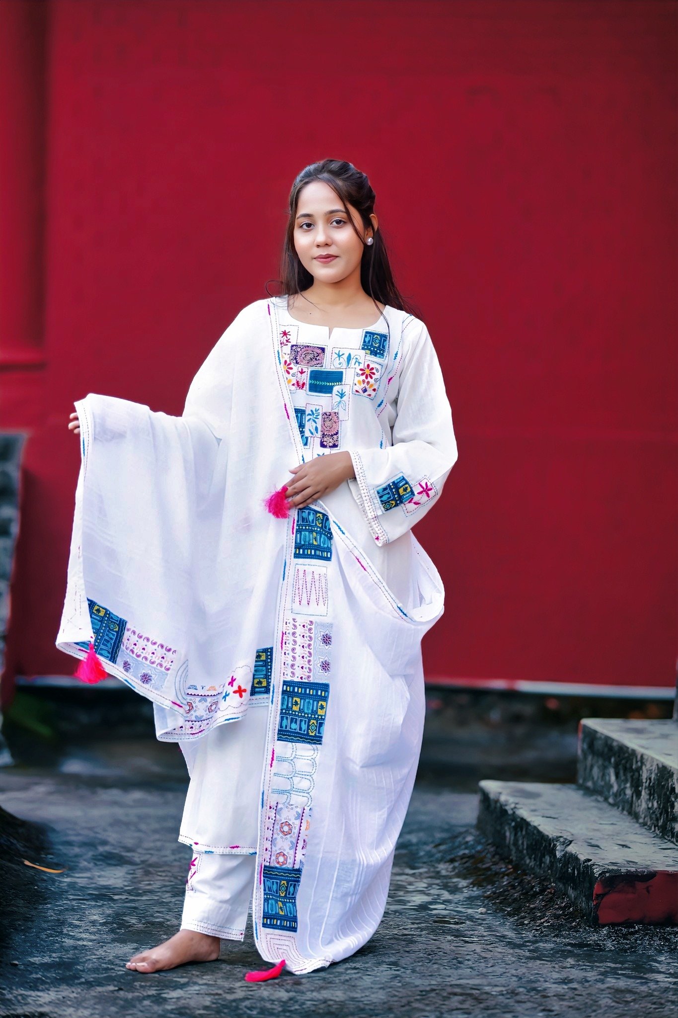 নিজের লুকে আনুন এক টুকরো ঐতিহ্যের ছোঁয়া! নরম কটন ফেব্রিকে তৈরি এই সাদা কুর্তিটিতে রয়েছে রঙিন হাতে করা এমব্রয়ডারি ডিজাইন, যা একে করে তুলেছে অনন্য ও আকর্ষণীয়। অফিস, কলেজ বা ক্যাজুয়াল যেকোনো দিনে পরার জন্য একদম পারফেক্ট।